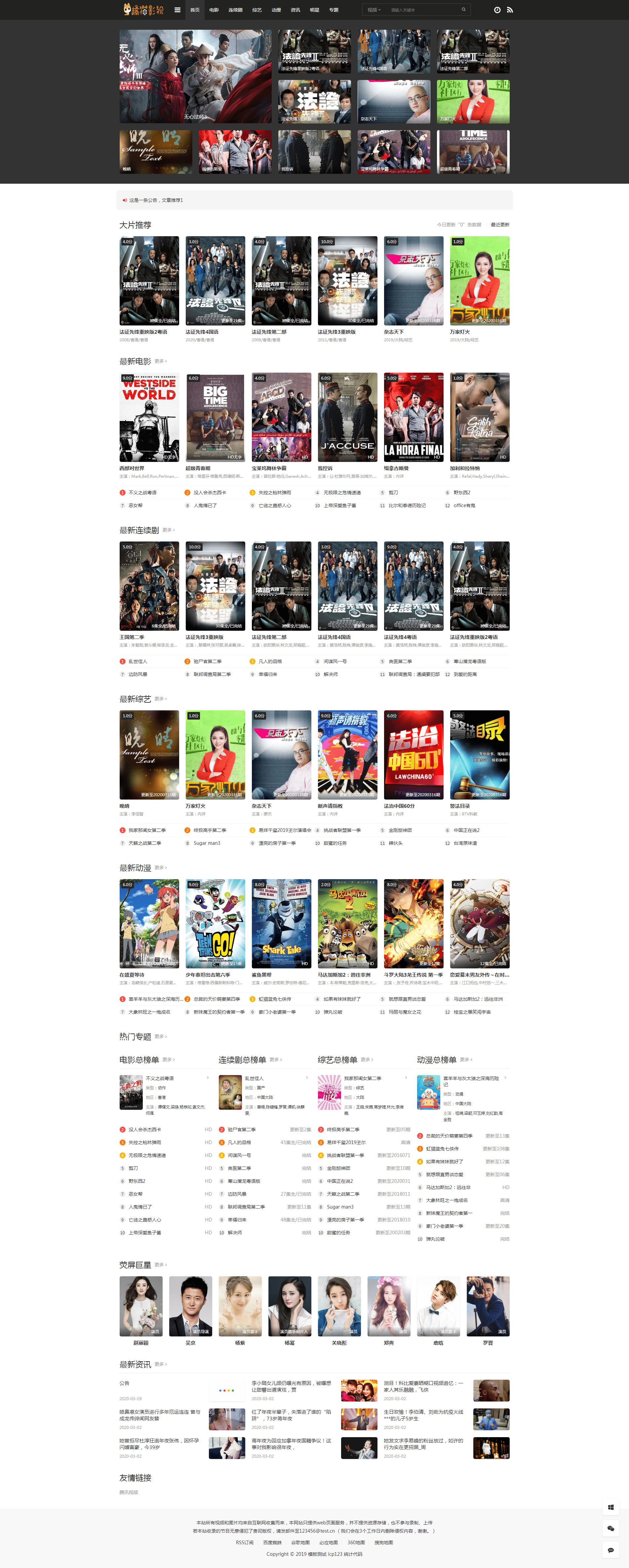 26套前端版本,无主题后台,明星,专题,会员,资讯都有。