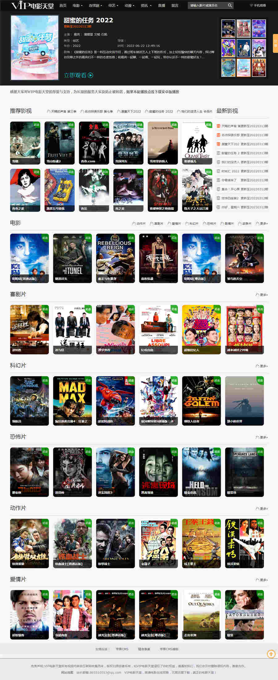 仿VIP电影天堂影视网站苹果CMSV8自适应模板P