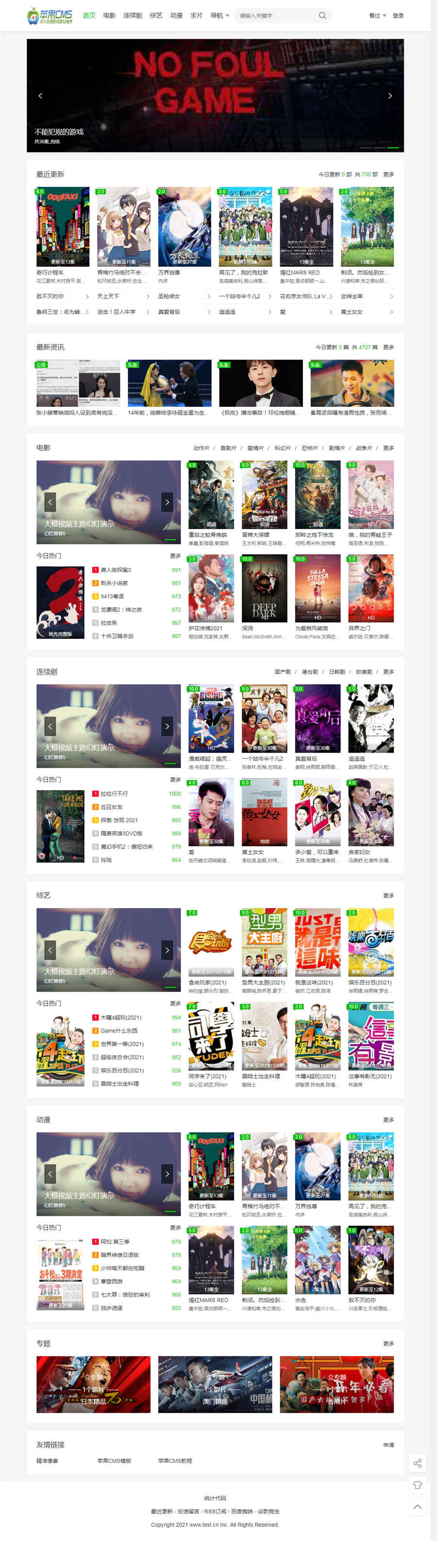 之前分享过一款苹果CMSV10版本的通用主题模板和这款非常像,只有少许部分地方不同。