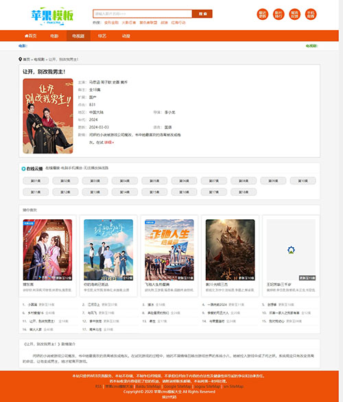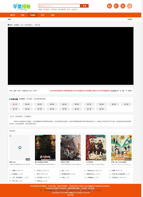橙色是非常少见的模板颜色,但是展示效果却很出色,这款橙色影视网站自适应模板,是兼容pc、wap自适应访问,也算是一个小精品。