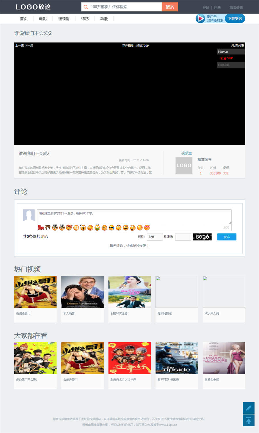 | 模板安装教程: 1.将模板v1905上传至网站template文件夹内。 2.登陆苹果cms后台-系统管理-当前使用模板-替换新模板v1905 3.点击视频-视频分类-更换电影分类为movie.html电视剧tv.html动漫dm.html综艺zy.html 4.模板html目录更换为xiaog-html 5.点击数据缓存更新,内存数据更新,文件缓存更新。 6.播放器宽度调整970高度450最佳。 7.点击站点首页查看效果吧! 模板截图: |