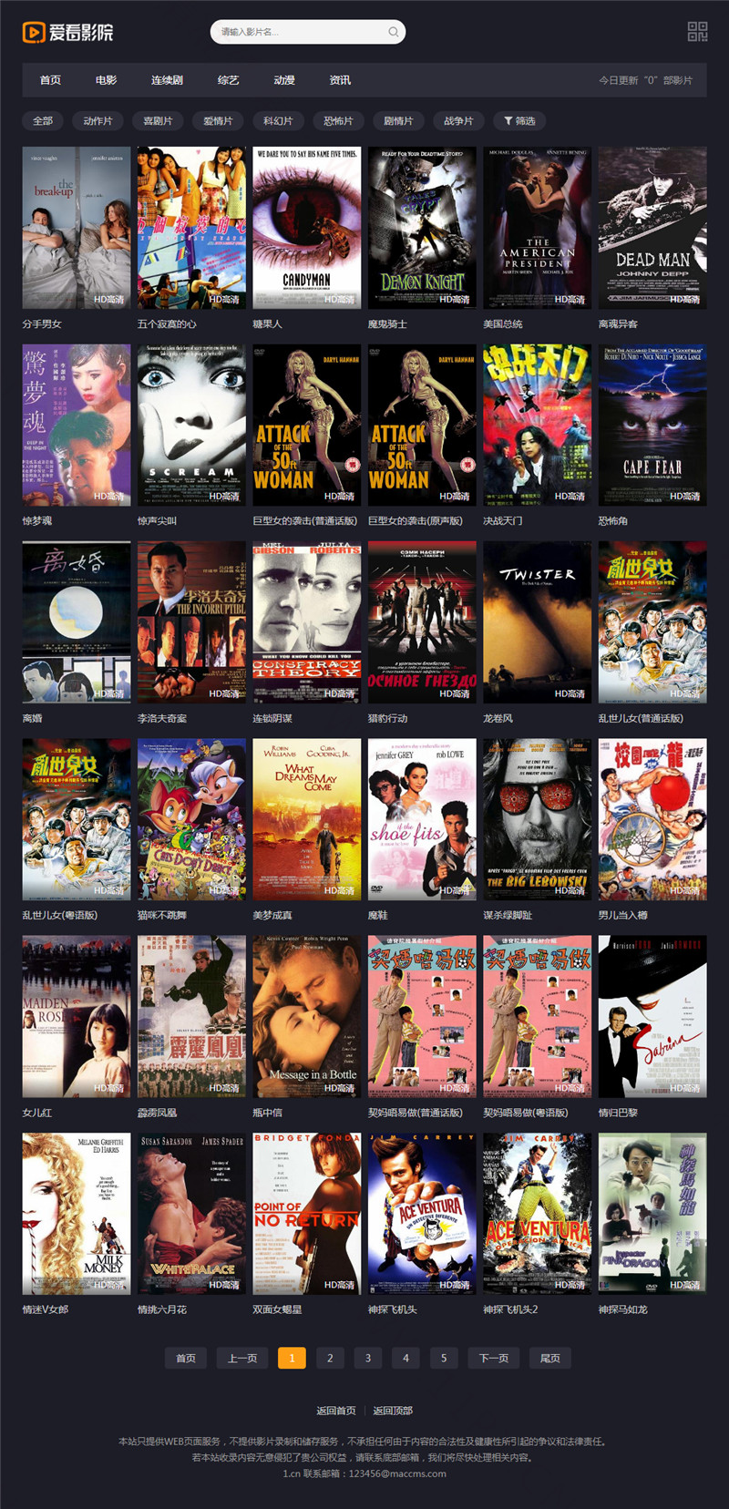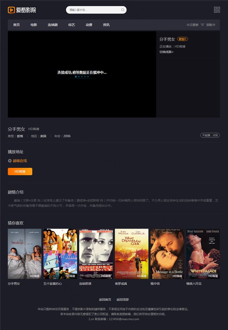 仿爱看影院苹果CMSV10模板,模板测试完美无错,安装即可使用。本苹果CMS模板为v10版本,网站模板为UTF-8编码,自适应手机端。