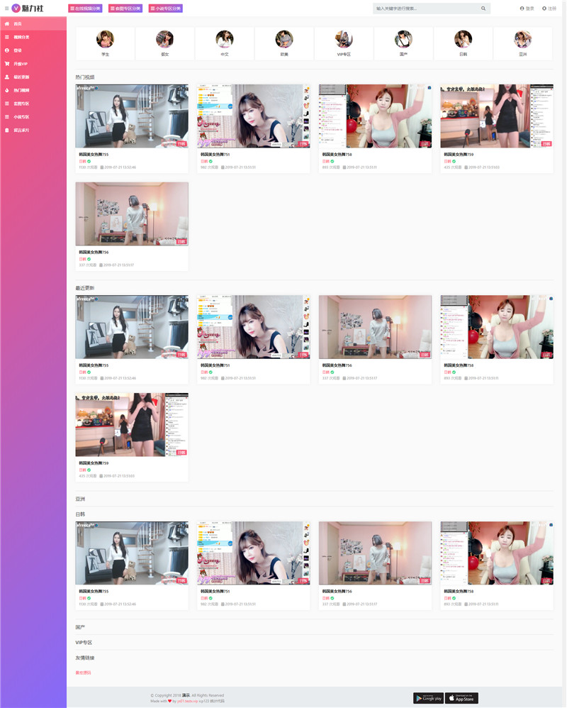 苹果CMS仿魅力社网站模板,苹果cmsV10版本,自适应手机端,非常适合美女直播视频等等行业使用。