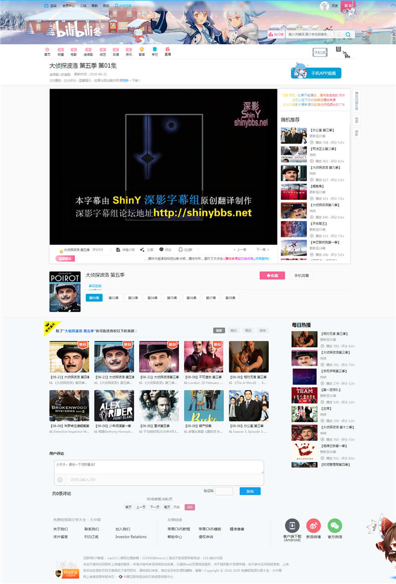 苹果CMSv10仿B站网站模板,带手机端模板。已测试,可以使用,但有些小细节需要自己完善。