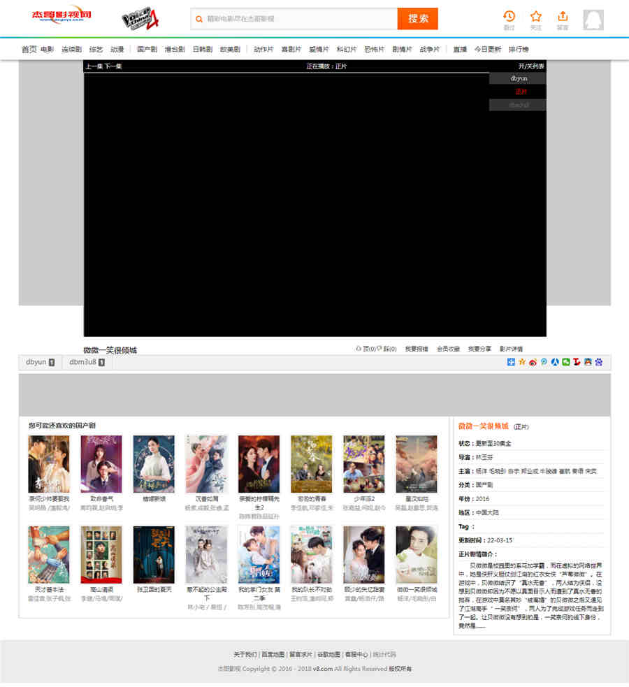 一款苹果CMSV8仿杰哥影视主题模板,电脑端,白色风格,UTF-8编码,苹果cmsV8版本,已测试,完美无错。