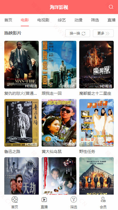网站模板包含首页、电影列表页、内容页、播放页。网站模板基于海洋CMS开发,UTF-8编码。模板首页调用需要修改,部分样式有兼容问题,有能力的朋友可以自行下载修改。